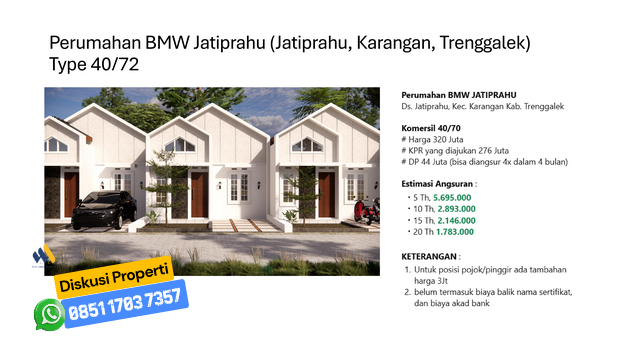 Dengan KPR BMW, Anda bisa mendapatkan hunian impian di Perumahan Subsidi dan Komersil di Kecamatan Pogalan, Wonocoyo, Trenggalek tanpa harus khawatir berlebihan soal biaya.
